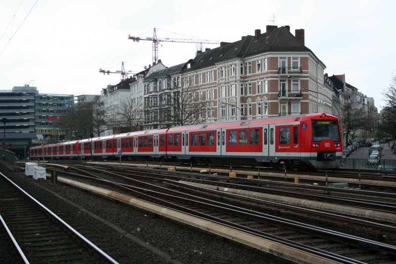 Hamburger S-Bahnzug der Linie S3 mit DB 474 112-0 am 19.4.2008 in Hamburg-Altona.
