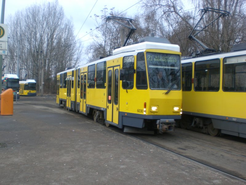 Berlin: Straßenbahnlinie 21 nach S+U Bahnhof Lichtenberg am S-Bahnhof Schöneweide/Sterndamm.