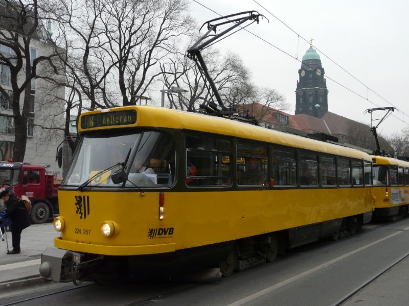 Dresden - Strassenbahn Nr. 224 267 unterwegs auf der Linie 8 am 10.12.2008