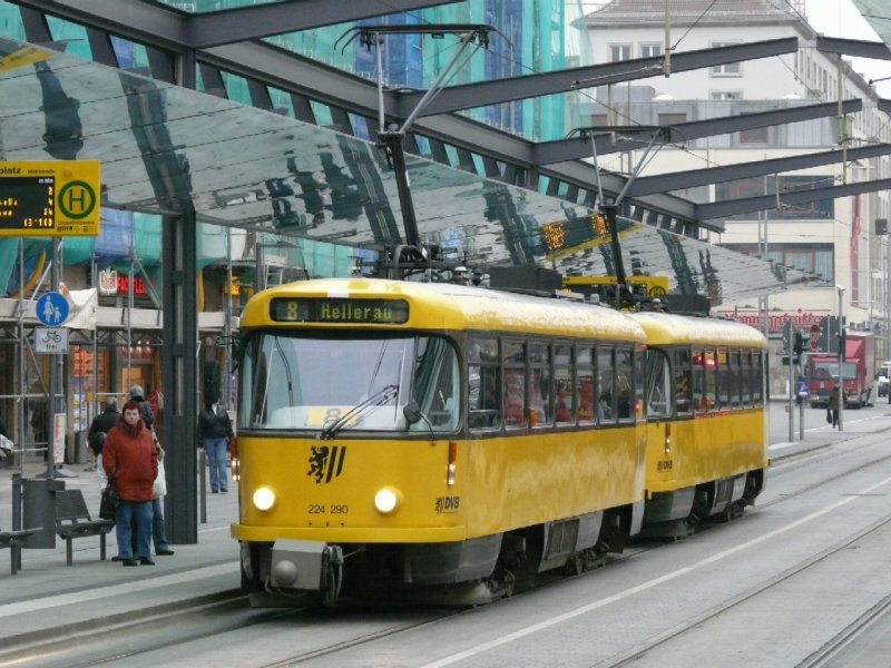 Dresden - Strassenbahn Nr. 224 290 unterwegs auf der Linie 8 am 10.12.2008