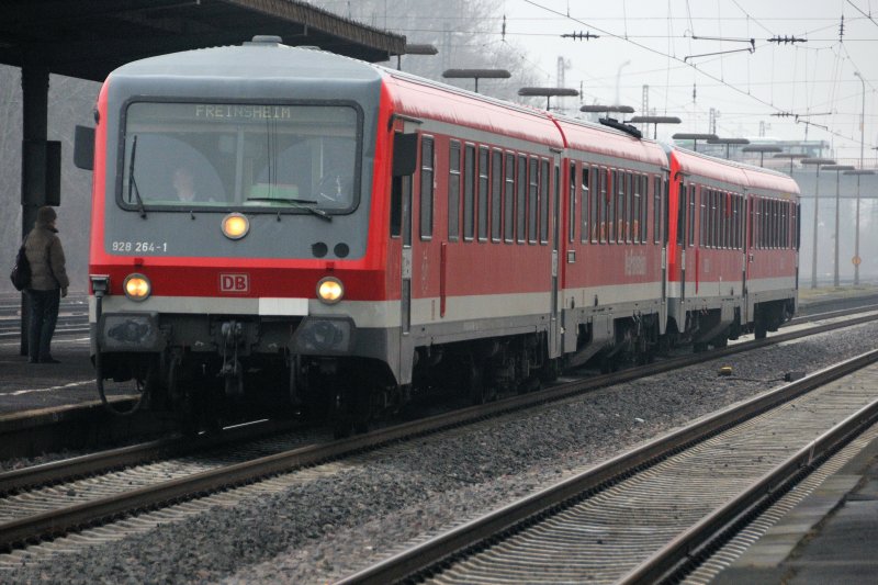 Eine Doppeltraktion der BR 628/928, unterwegs auf der KBS 667/666 -Pfälzische Nordbahn-, bei seinem Halt in Ludwigshafen-Oggersheim am 6. Februar 2009.
