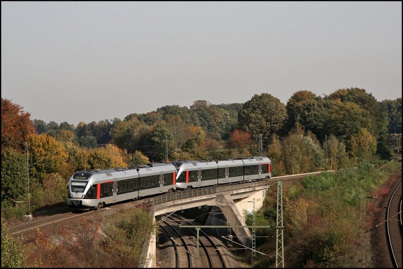 ET22xxx und ET23xxx sind als ABR99616 (RE16 "Ruhr-Sieg-Express"), Essen Hbf - Siegen, bei Bochum-Langendreer unterwegs. (13.10.2008)