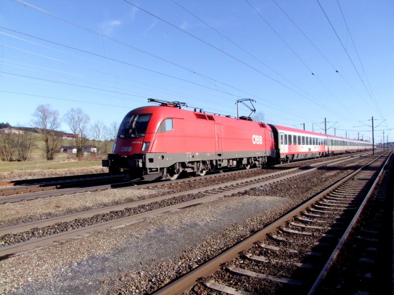 1016 042-2 braust mit OEC60 durch den Bahnhof Redl-Zipf; 090124