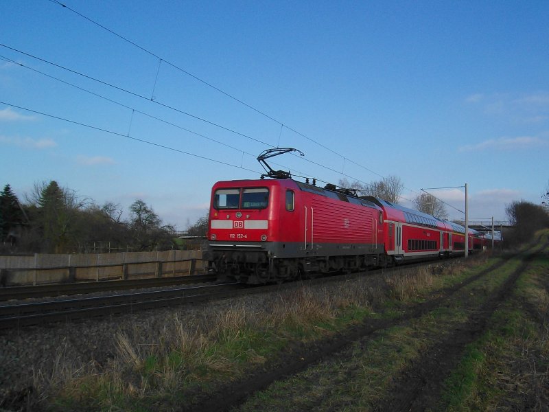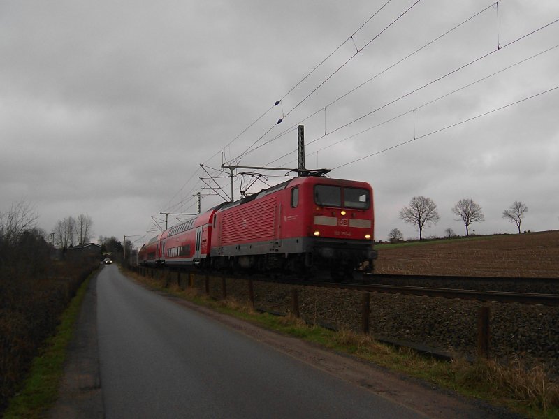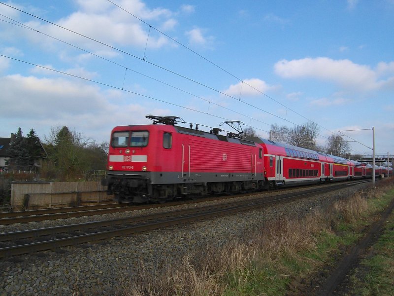 112 152-4 schiebt am 25.01.09 den RE 21420 Hamburg Hbf - Lübeck Hbf durch Altenfelde Richtung Lübeck.