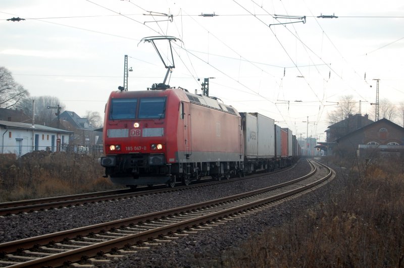 185 047 mit Containerzug am 17.01.2009 durch Nordstemmen -> Hildesheim