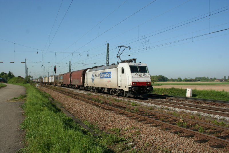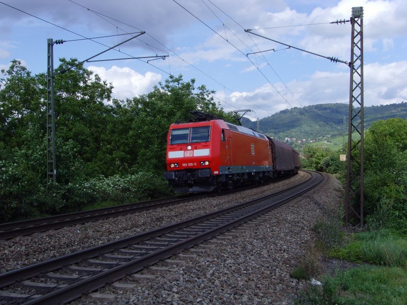 185 100-5 mit einem gemischten Güterzug kurz vor Schallstadt. 28.07.07