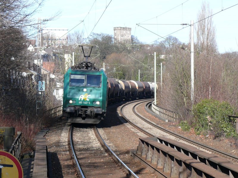 185 543-6 von Rail4Chem durchfährt mit einem Kesselwagenzug Aachen-Schanz in Richtung Köln-Gremberg. Aufgenommen am 25/01/2009.
