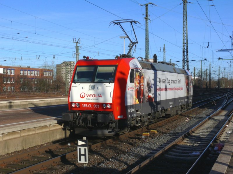 185-CL 003 der Veolia Transport am 25.1.2009 ber der durchfahrt des Dortmunder Hauptbahnhofs