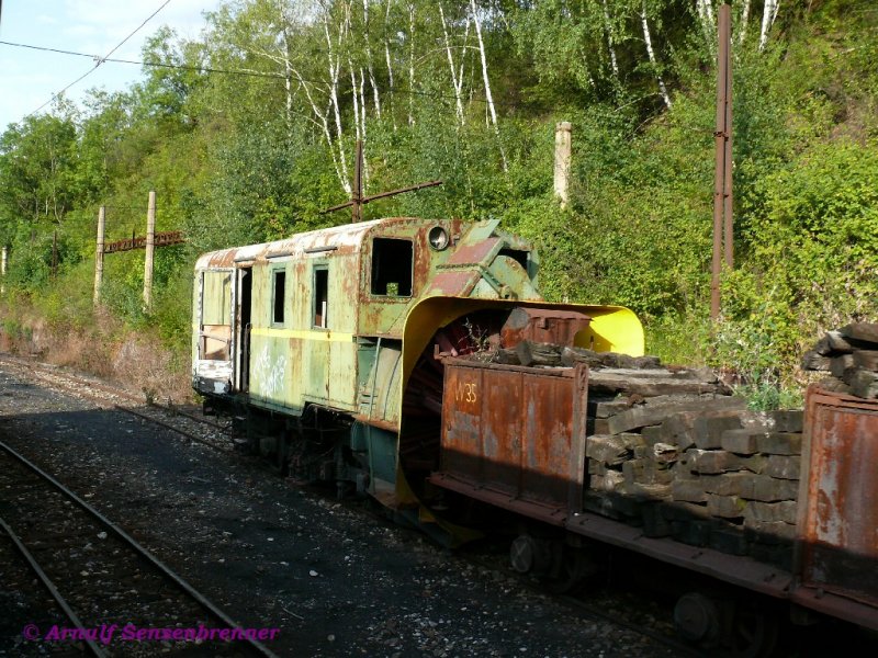 Abgestellte Schneeschleuder der SGLM. Heute verkehrt die SGLM als Touristenbahn planmäßig nur von April - Oktober.