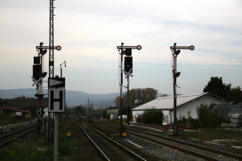 Alte und neue Signalanlagen im Bahnhof Meckesheim. Inzwischen sind die alten Signale entfernt und die neuen in Betrieb. Bild aufgenommen am 13.10.2008