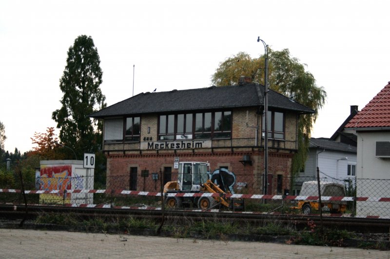 Altes Stellwerk im Bahnhof Meckesheim. Inzwischen hat es seinen Dienst aufgegeben und ist durch ein elektronisches Stellwerk ersetzt worden. Bild aufgenommen am 13.10.2008