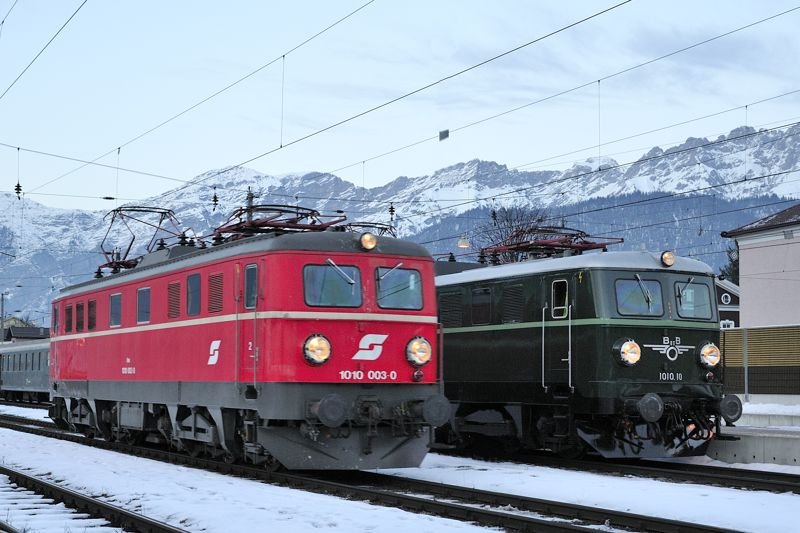 E-Lok 4004 verlässt am 25.01.09 die Haltestelle Michelau und setzt ihre Fahrt in Richtung Luxemburg fort. (Hans)