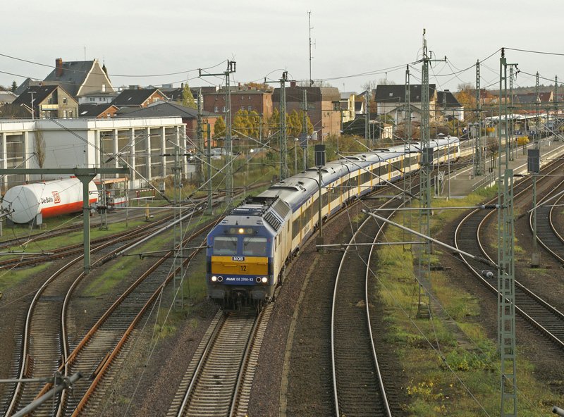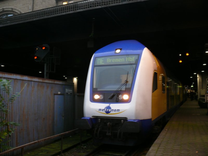 RE1 fährt in Schwerin vom Güterbahnhof in den Hauptbahnhof um dann planmäßig nach Hamburg zu fahren. 30.12.2008