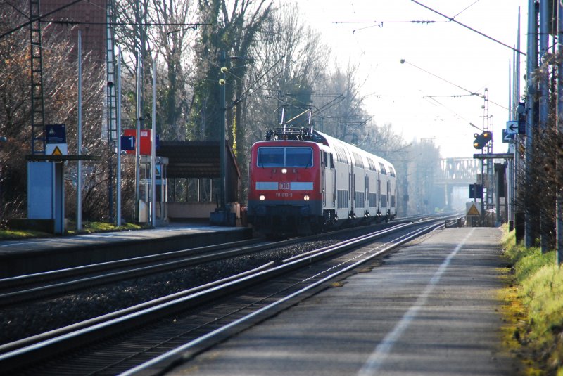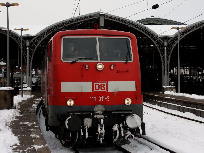 Die 111 011 am 05.01.2009 mit einer RB bei der Ausfahrt aus dem Kölner Hbf.