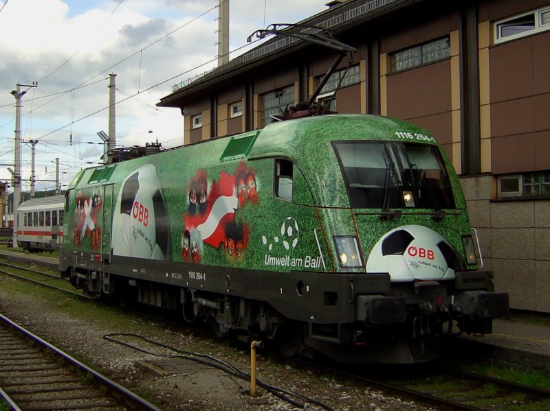 Die 1116 264 Euromotion am 01.05.2008 bei einer Rangierfahrt in Salzburg Hbf.