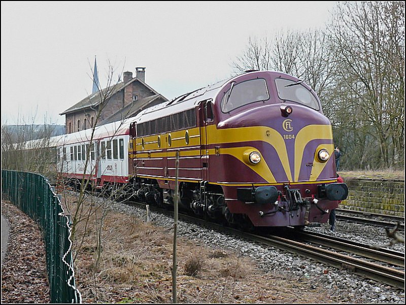 Die Museumsdiesellok 1604 aufgenommen am 25.01.09 beim Verlassen des Bahnhofs von Bissen in Richtung Ettelbrück. (Hans)