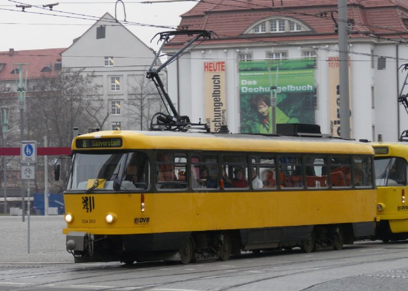 Dresden - Strassenbahn Nr. 224 263 unterwegs auf der Linie 8 am 10.12.2008