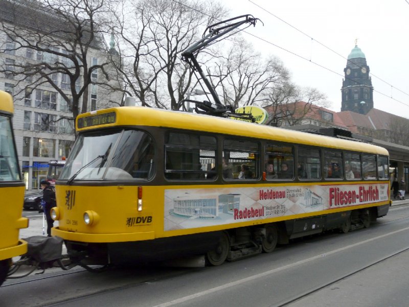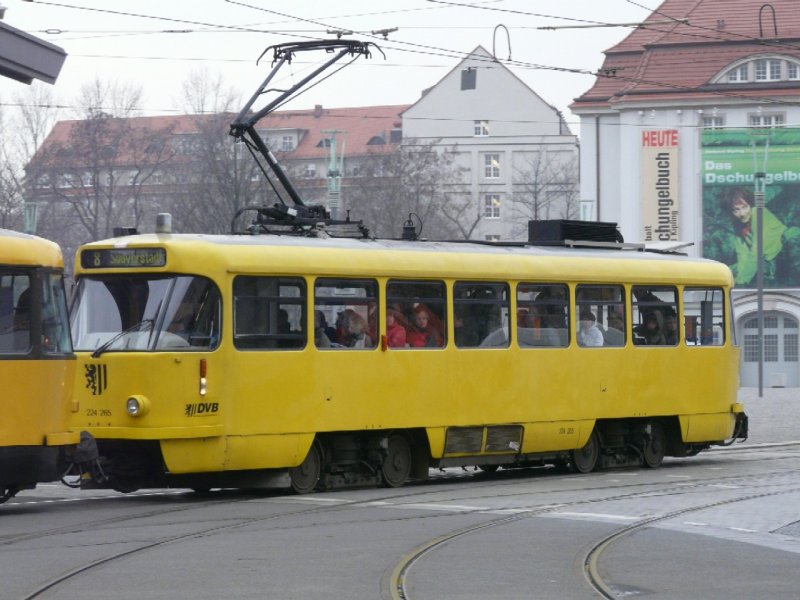 Dresden - Strassenbahn Nr. 224 265 unterwegs auf der Linie 8 am 10.12.2008