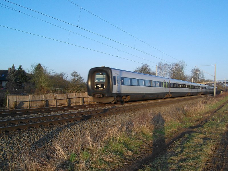 DSB IC 3 5088 rast am 24.01.09 als EC 35 Hamburg Hbf - Kopenhagen nach der Durchfahrt in Reinfeld (Holst.) Richtung Lübeck.