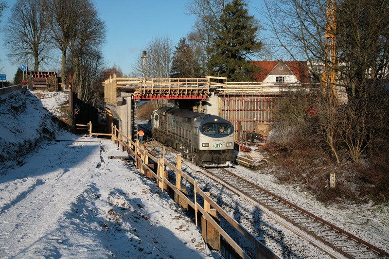 ITL kommt LZ von Wittenburg in Hagenow durch die Brückenbaustelle gefahren. 05.01.2009
