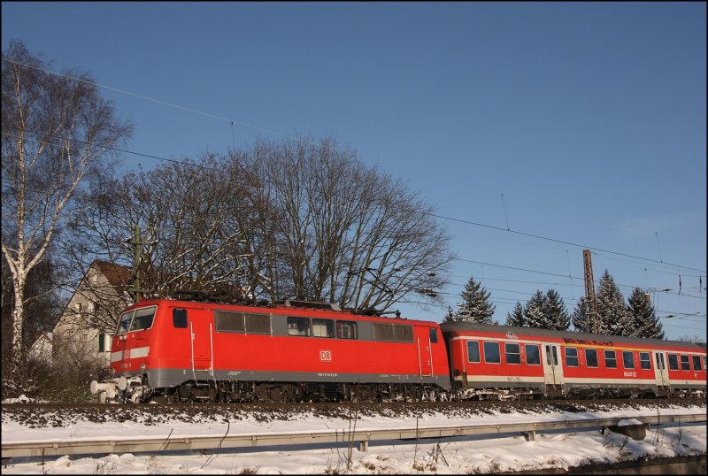 Standortwechsel zurück nach Westhofen: 111 112 (9180 6 111 112-9 D-DB) ist bei Westhofen mit dem RE13 (RE 9022) "Maas-Wupper-Express", Hamm(Westf) - Venlo, unterwegs. (06.01.2009)