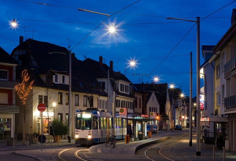 OEG Salonwagen am 24.1.2009 bei der Haltestelle Stahlbad in Weinheim. Nach einen Wetterennen mit dem Rad konnte ich ihn dann doch noch erwischen. Der Fahrer hatte mich verdutzt angeschaut.