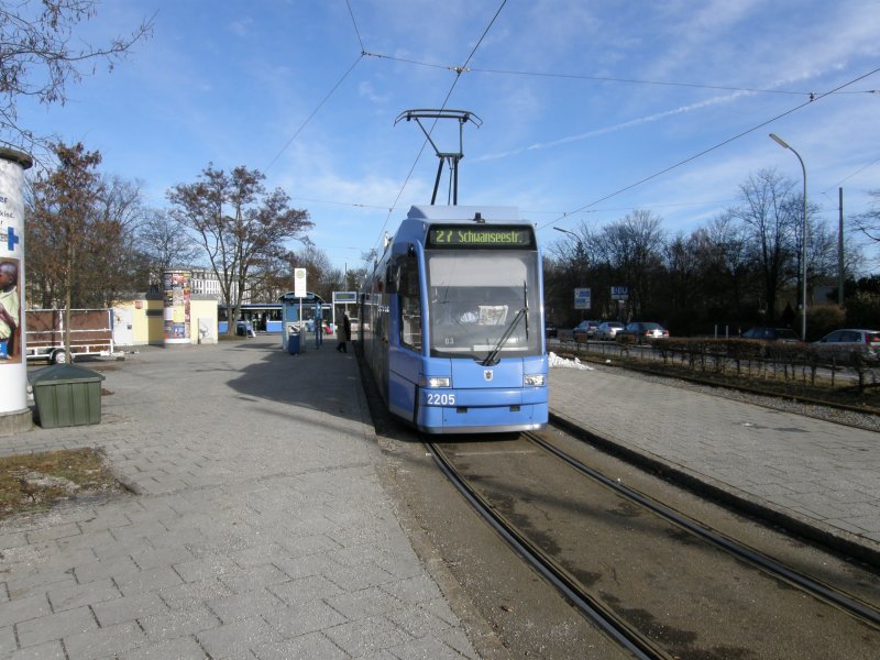 Berlin: Straßenbahnlinie M4 an der Haltestelle Falkenberg.