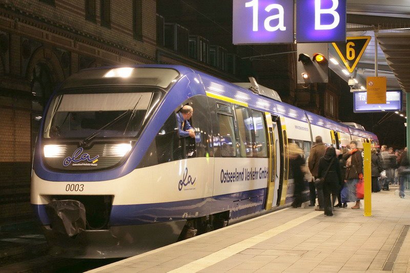 Schwerin Hbf. das Umsteigen am Bahnsteig 1a wird vom TF überwacht. 13.01.2009