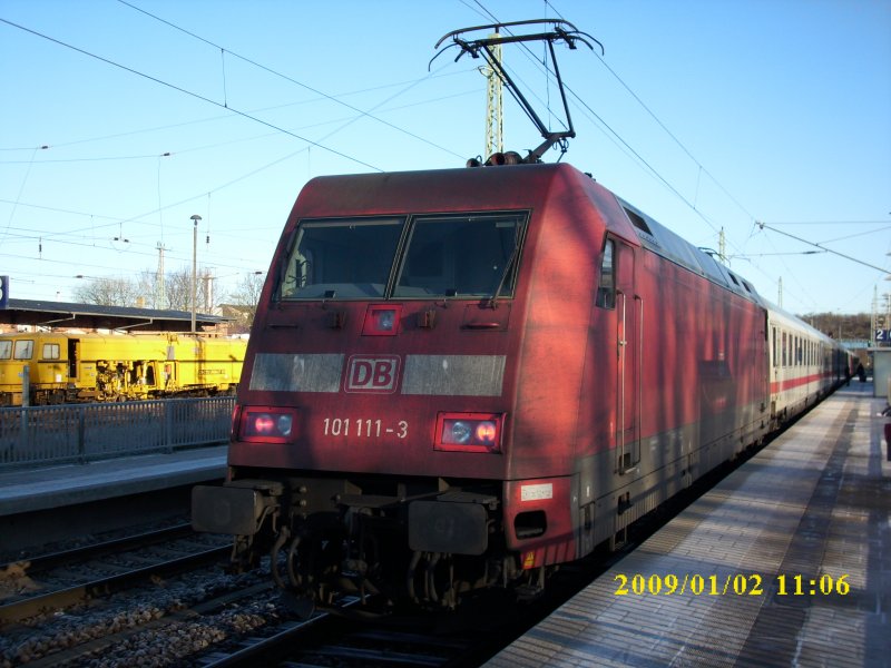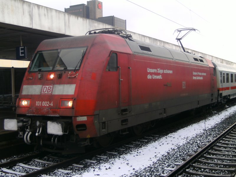 101-002-4 mit einem IC von Leipzig nach Oldenburg am 02.01.2009. Der Lok würden vieleicht Handschuhe gegen die kalten Puffer helfen.