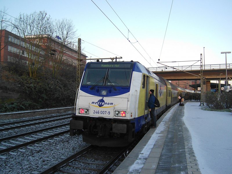 246 009-5 hat den ME 39408 von Cuxhaven nach Hamburg Hbf gebracht und wird nun mit ME 39411 die Rückreise nach Cuxhaven antreten. Hamburg Hbf 2.01.09.