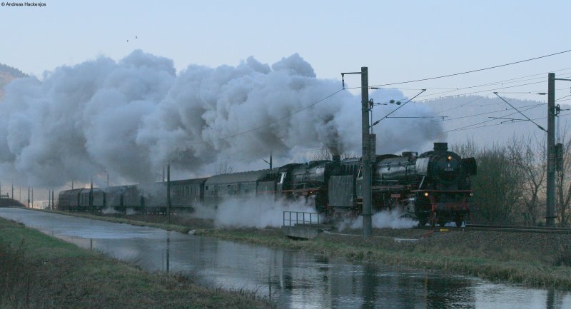 052 740-8 unter Volldampf, aufgenommen am Kanal bei Haslach. 3.1.09