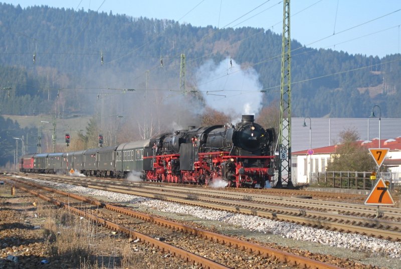 41 018 und 01 202 mit ihrem Sonderzug nach Hausach bei der Einfahrt in Haslach. 3.1.09