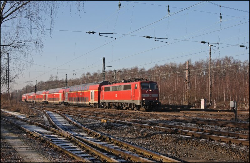 Die Dortmunder 111 127 (9180 6 111 127-7 D-DB) bringt bei Ehrenfeld den RE 4 (RE 4319) "Westfahlen-Express" von Düsseldorf Hbf nach Minden(Westf).