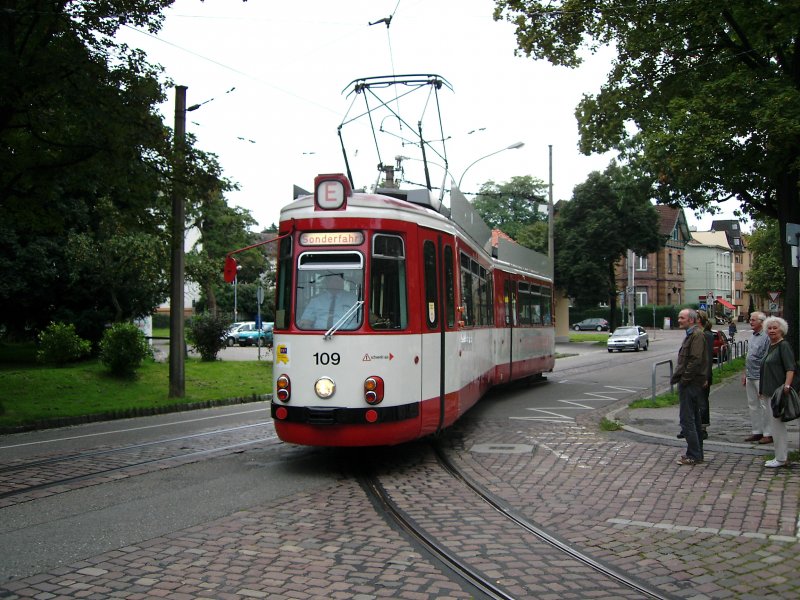 GT4 "109" nach dem Einsatz auf der Oldtimerlinie 7 beim Einfahren in den Betriebshof Süd (Urachstraße).