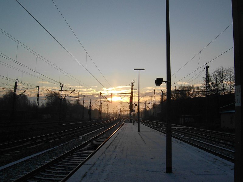 Schwerin Hbf. Blick vom Bahnsteig 3 nach Bahnsteig 2. Gleich wird die Sonne auf gehen. 30.12.2008