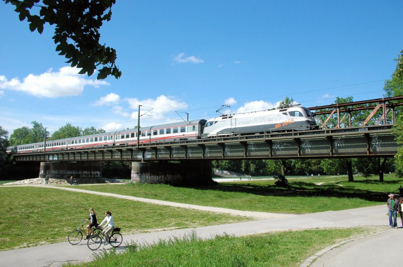 1016 034 am 31.05.09 mit EC 83 nach Verona auf der Braunauer Brücke in München