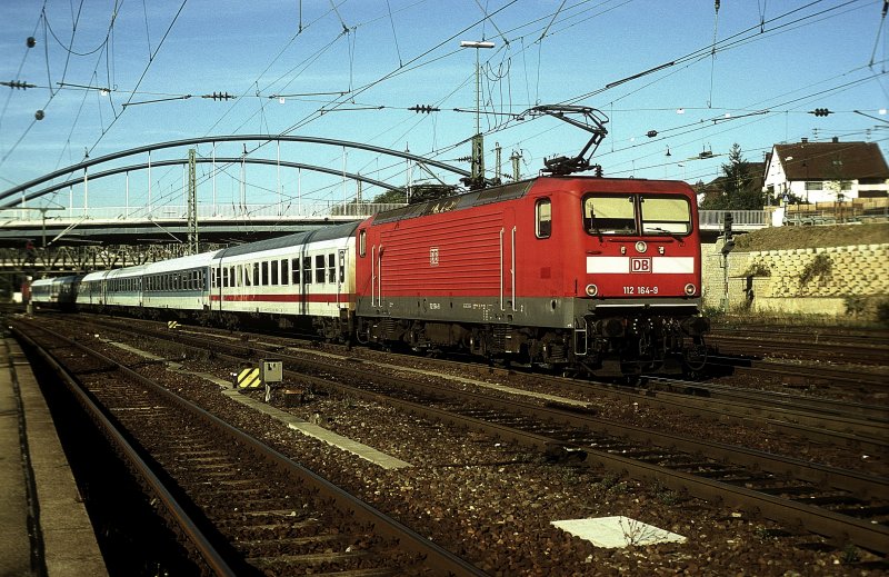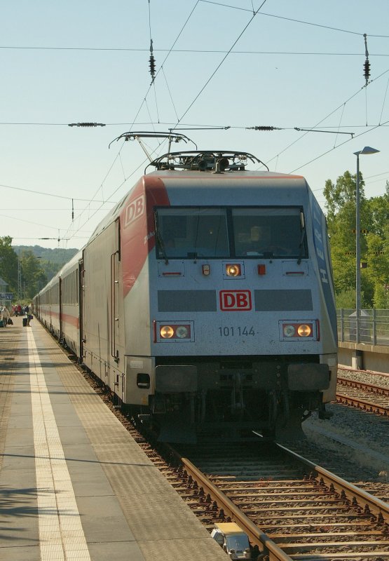 Ein Versuch von der 101 144, trotz widriger Umstände (Gegenlicht und Bahnsteig) ein ansprechendes Bild zu bekommen.