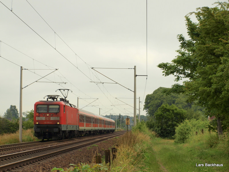 112 176-3 rast am 29.06.09 mit RE 21414 aus Hamburg Hbf zum nächsten Halt nach Reinfeld (Holst.). Ziel des Zuges ist Lübeck Hbf.