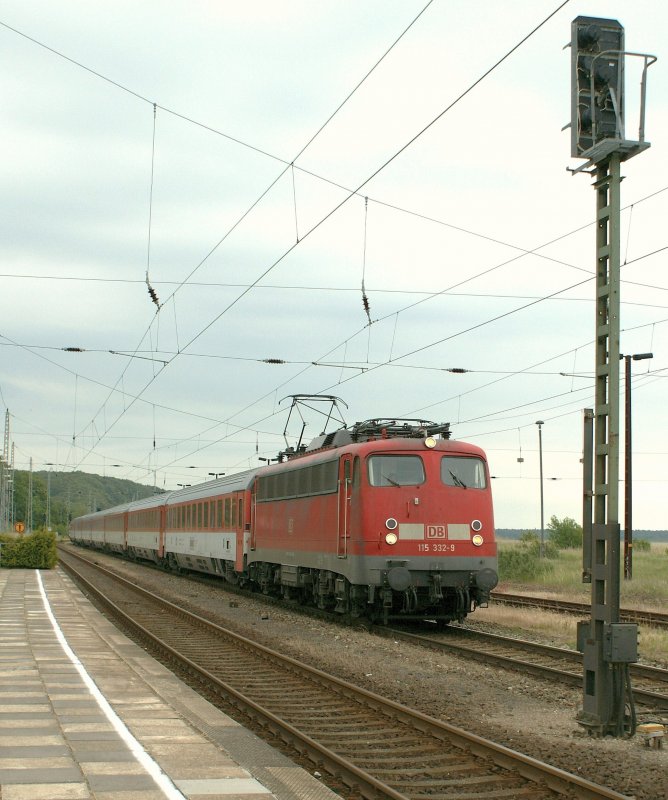 115 332-9 mit EC 379 von Binz nach Brno in Lietzow am 18. Juni 2009.