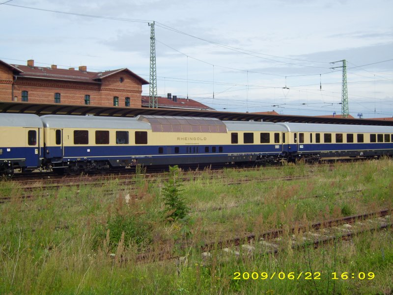 Aussichts - Wagen des Reihngold - Sonderzuges am 22.06.09 in Lübbenau Spreewald.