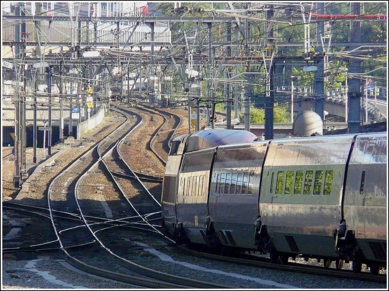 Der Thalys nimmt einen Anlauf, um die Steigung (plan incliné) zwischen Lüttich und Ans zu erklimmen. 30.05.09 (Jeanny)