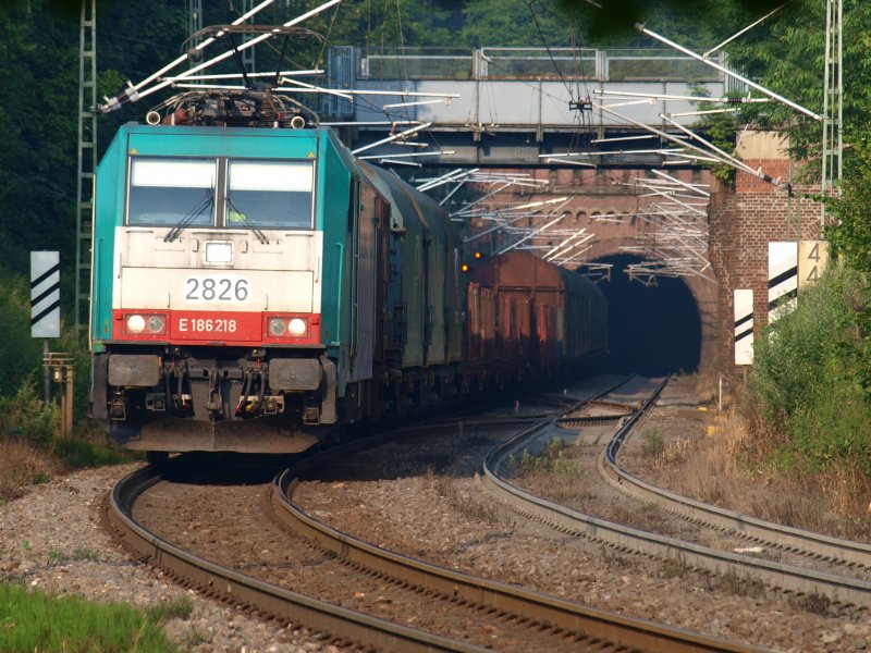 E 126 218 rollt mit einem gemischten Güterzug aus dem Gemmenicher Tunnel nach Aachen West runter.
