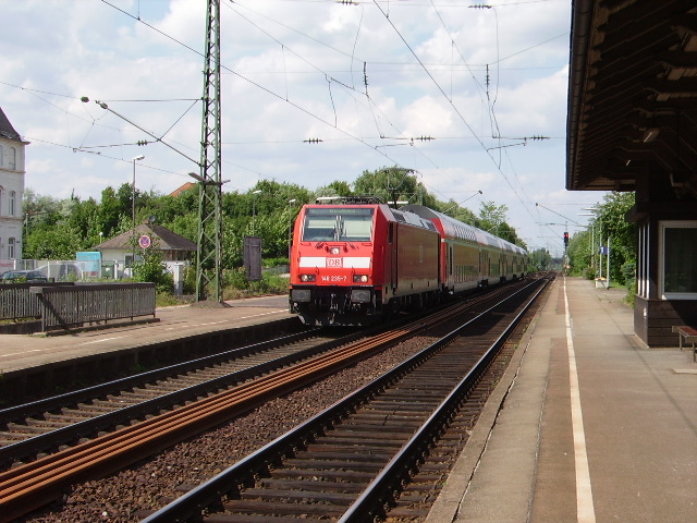 RE 19227 Mosbach - Stuttgart - Ulm - Donauwörth kurz vor Peterswörth beim Reiterhof. Das "Schmankerl" hatte sich am Ende des Zuges versteckt: 146 227-4 "Stuttgart 21". Es war die zweite Planleistung der Werbelok überhaupt (1. Fahrt am 20.06.2009) auf der KBS 993 Richtung Donauwörth. (Sonntag, 21.06.2009).