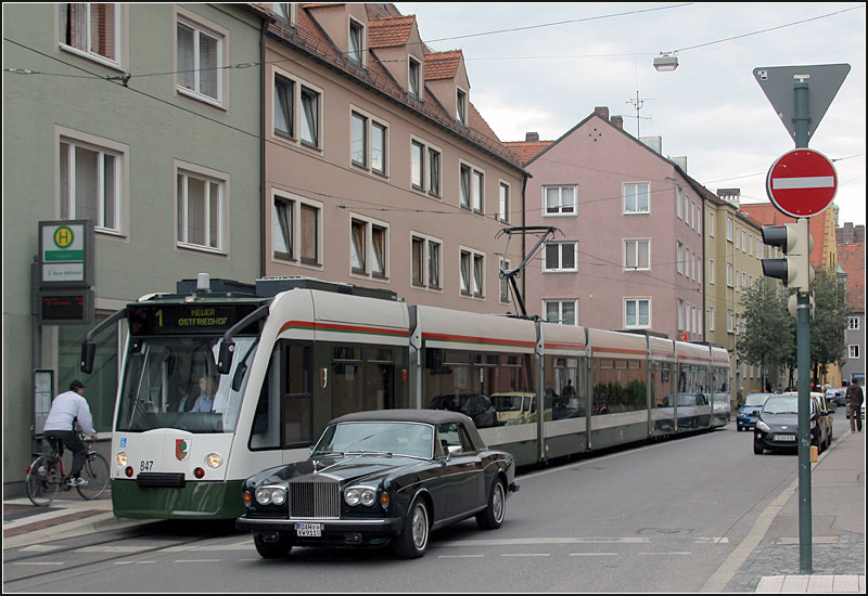 ... viele haben die freie Wahl des Verkehrsmittels in der Stadt. Haltestelle Fuggerei der Linie 1.