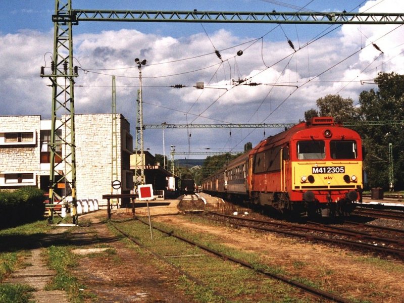 M41 2305 mit IC 971 “BATSÁNYI” Keszthely-Budapest-Déli pu. auf Bahnhof Tapolca am 8-8-2005. Bild und scan: Date Jan de Vries.