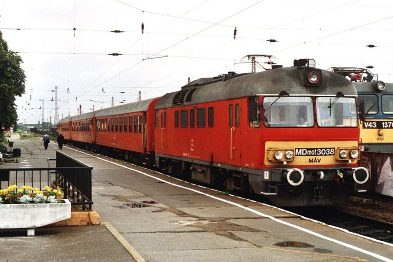 MDmot 3038 mit R 6613 Füzesabony-Debrecen auf Bahnhof Füzesabony am 4-8-2005. Bild und scan: Date Jan de Vries.