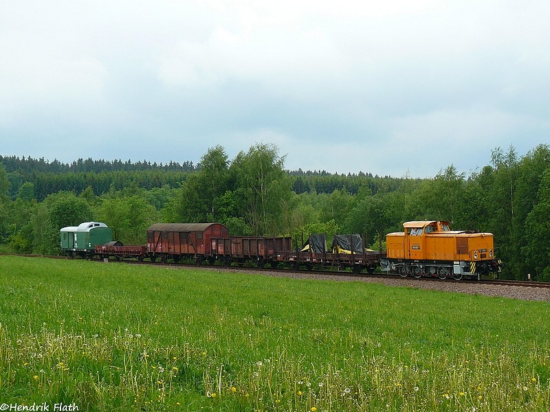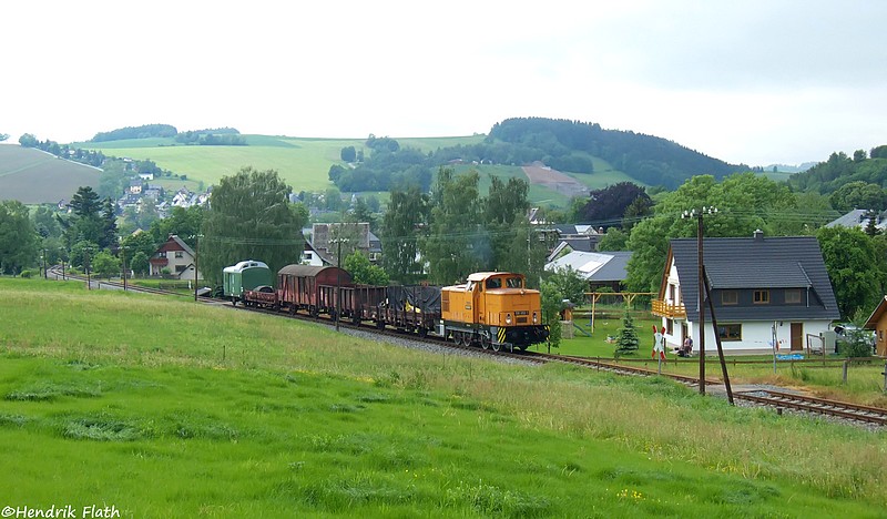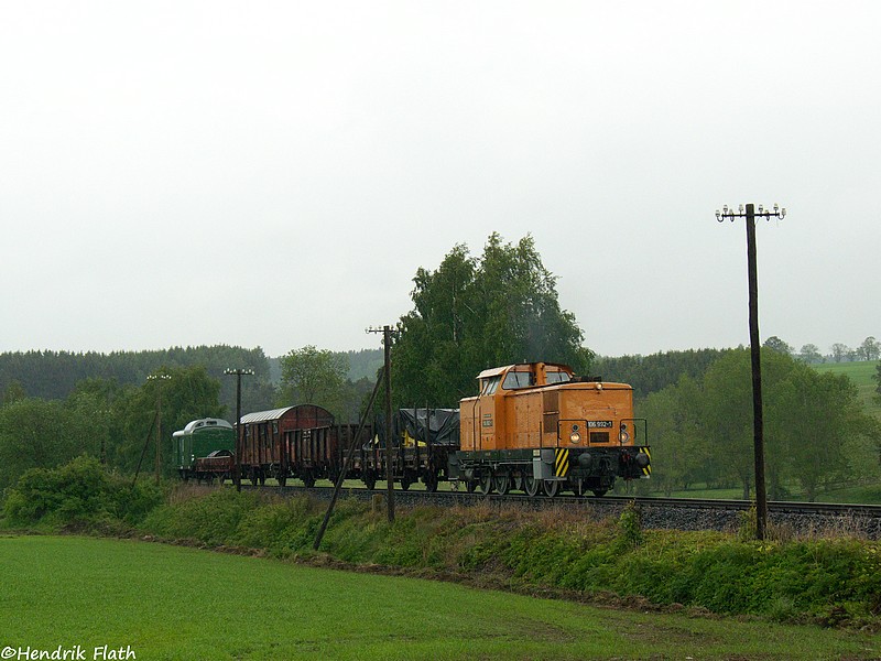 Der erste Vorbote des Gewitters am 22.05.2009 erreichte mich am nahe Walthersdorf, wo diese Aufnahme entstand. Es schüttete wie aus Eimern...aber was solls, bezahlt war einmal, und so muss auch weiter fotografiert werden! 106 992 ist mit DGS 91905 in Richtung Annaberg unterwegs.