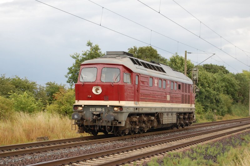 132 088-5 am 09.07.2009 kurz vor Überquerung des Mittellandkanals bei Peine
