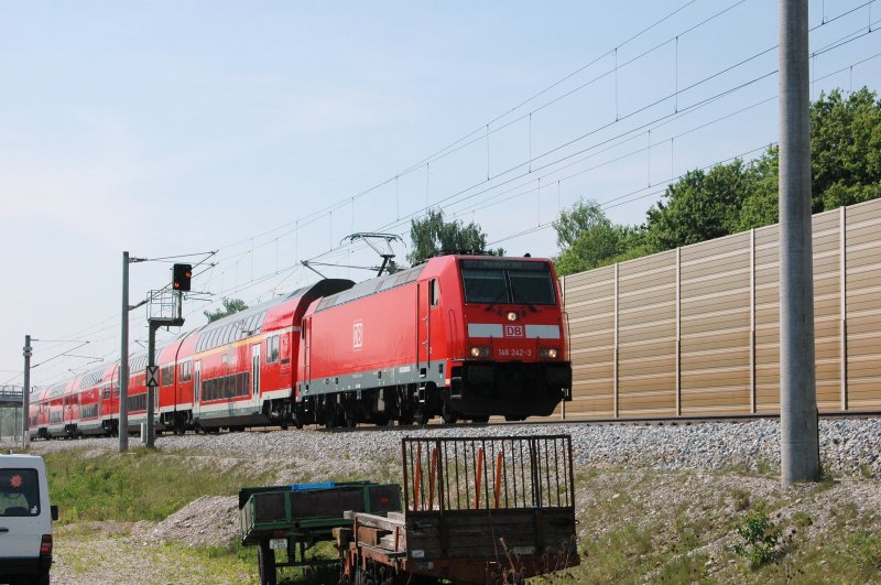 146 242 am 09.05.09 mit RE 30460 kurz vor ereichen des Bahnhof Dachau km 16,1