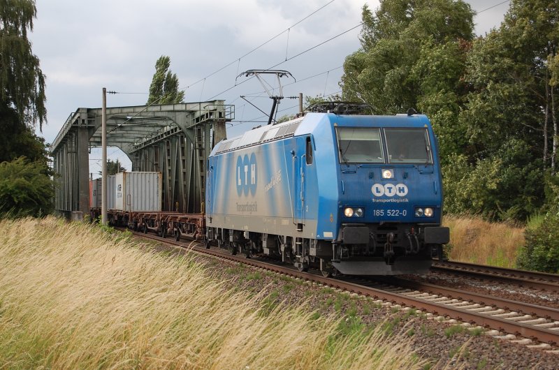 185 522-0 LTH am 08.07.2009 nach Überquerung des Mittellandkanals bei Peine